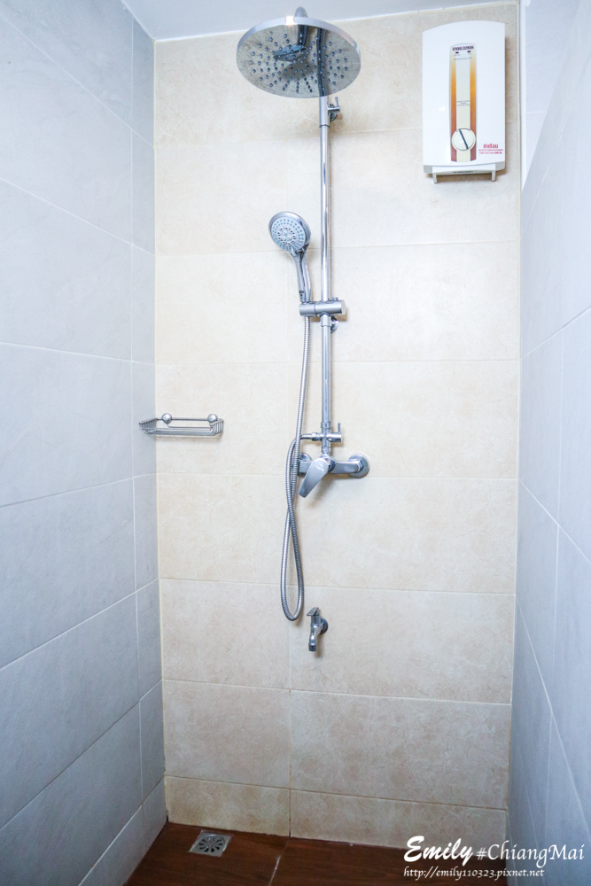 空間很大 洗澡時很舒服 架子可以放盥洗用具