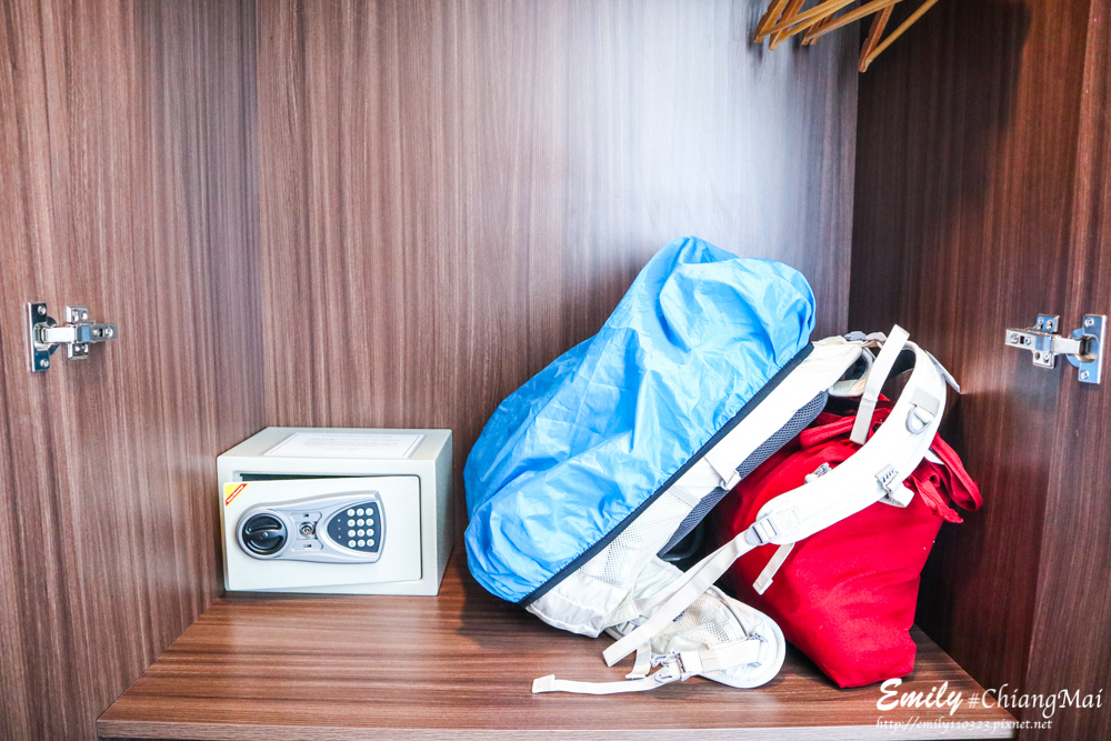 房間空間不大 所以一部分行李放衣櫃中